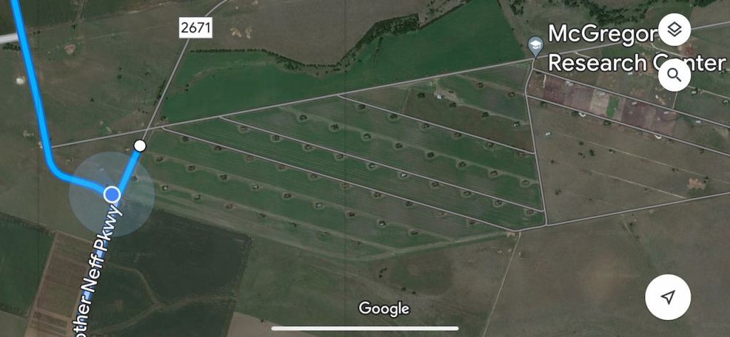 On my way out of town, I drove past the nearby SpaceX complex. Of course, I couldn’t get very close, but it was fun to get a peek at what they have going on. On my way there, I saw a field with some buildings half-buried in the ground; I still haven’t figured out what it was all about. There is a research station nearby, so may be related to that. I was so curious, I took a snip of a google satellite map, too!