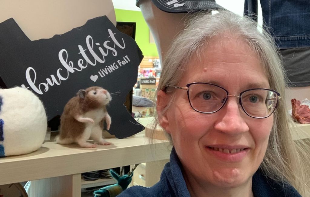 The next morning, I used the picnic tables in the park to make breakfast and headed over to my felting store at opening. It was so fun to introduce myself to the owner in person and see the shop in real life. I could see all the wool – all the glorious colors – and feel the different fibers. I made a few small purchases, but didn’t stock up because I don’t have much space in the car.